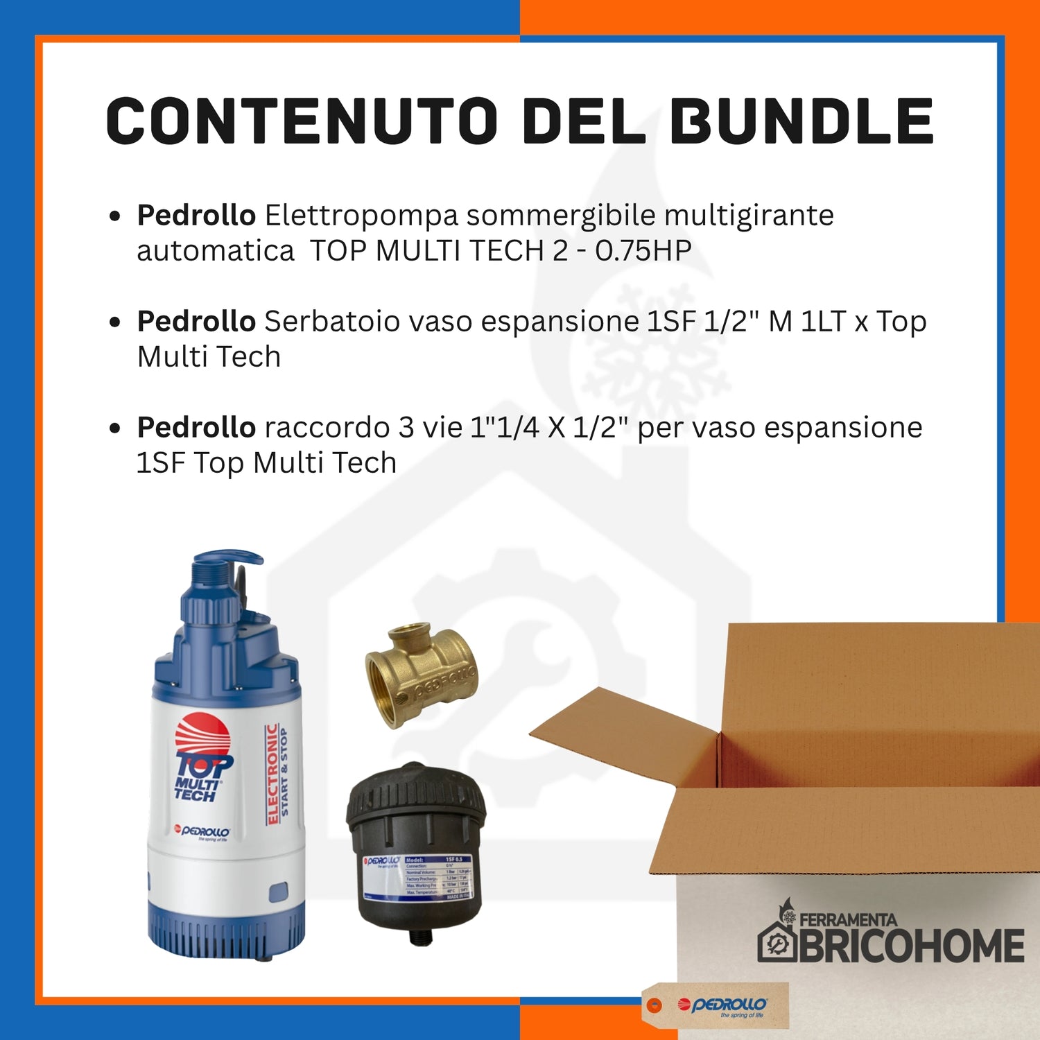 Kit Elettropompa Pedrollo TOP MULTI TECH 2 0.75HP + Vaso espansione 1LT + Raccordo a 3 vie [BUNDLE]