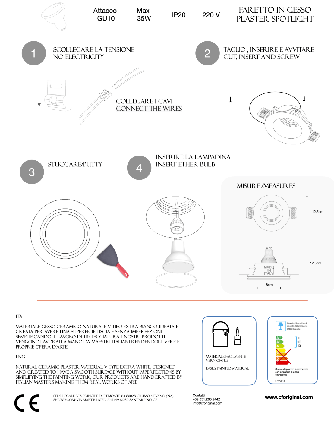Runder Gips-Einbaustrahler Durchmesser 12,5 cm für GU10-Leuchtmittel