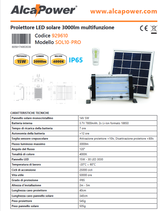 3000lm Multifunktions-Solarprojektor + Fernbedienung - SOL10-PRO