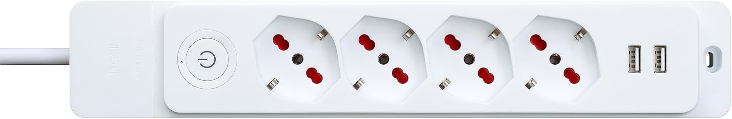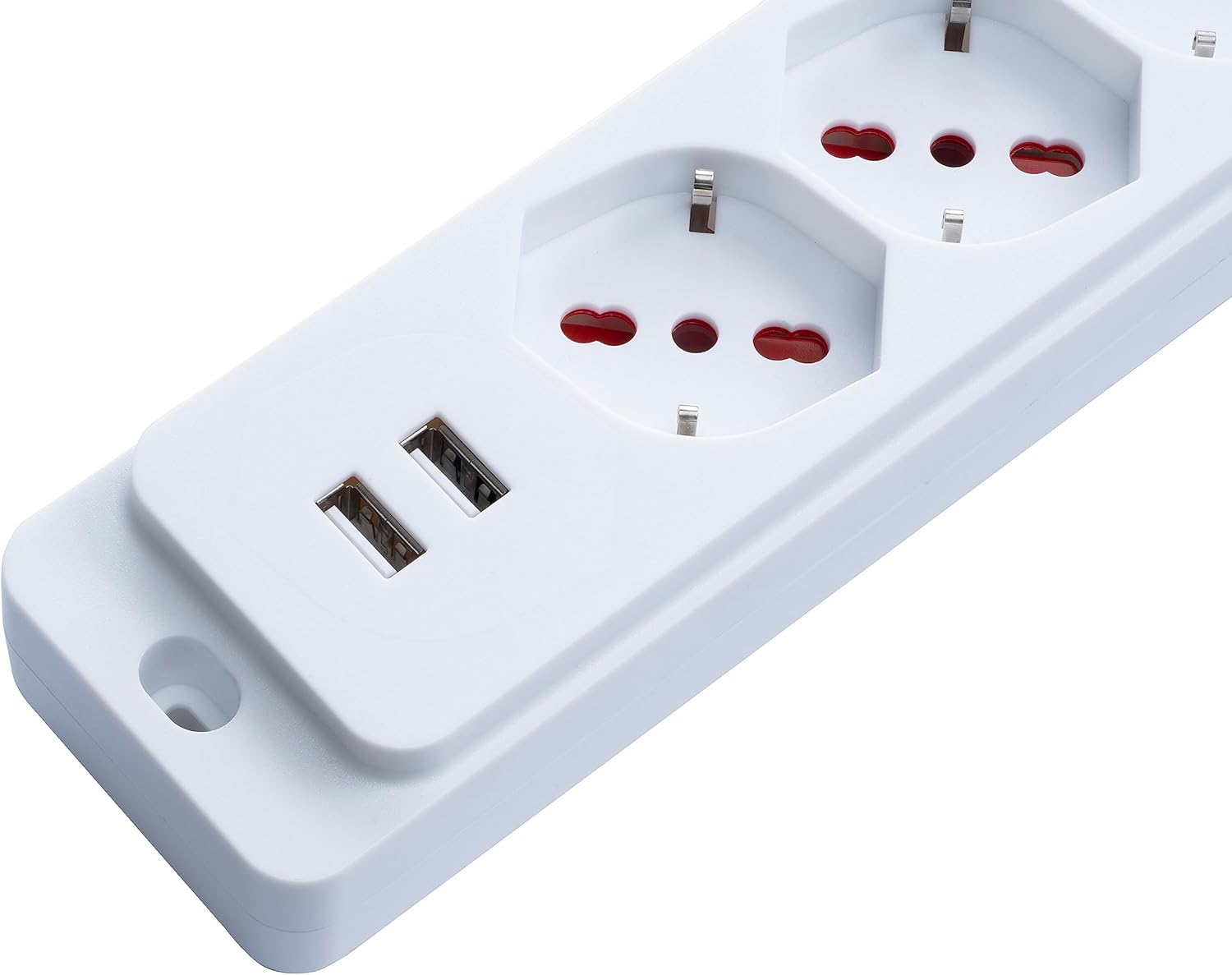 - 4 PRESE SCHUKO BIV. + 2 USB A RICARICA RAPIDA 3,4A + INTERRUTTORE + 1,5M CAVO 3G1,5