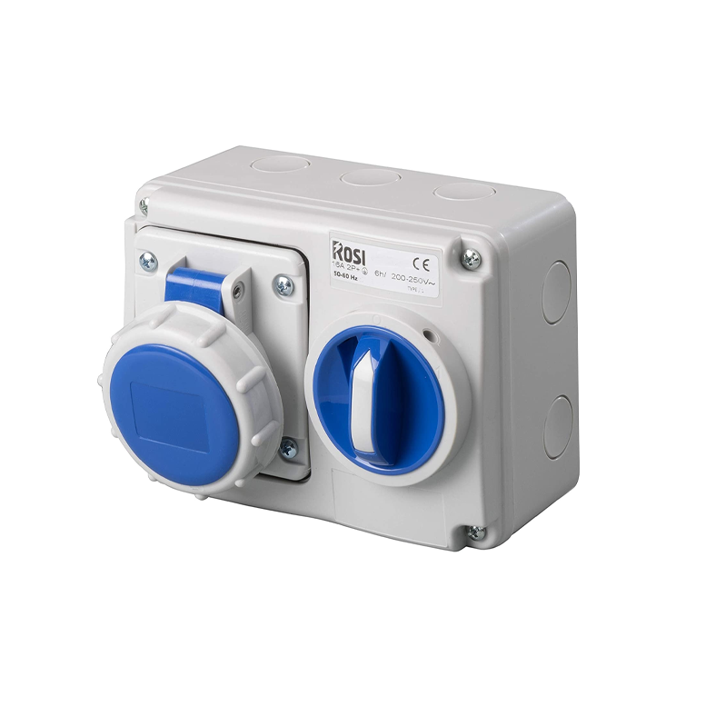 Horizontale Wandmontage-Steckdose mit Verriegelung und Boden 220 V 2P+E IP67