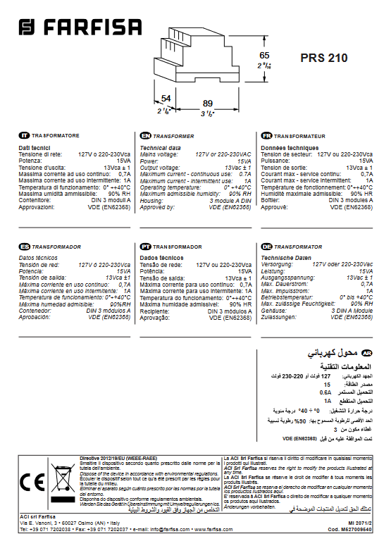 Stromversorgungstransformator - PRS210 FARFISA