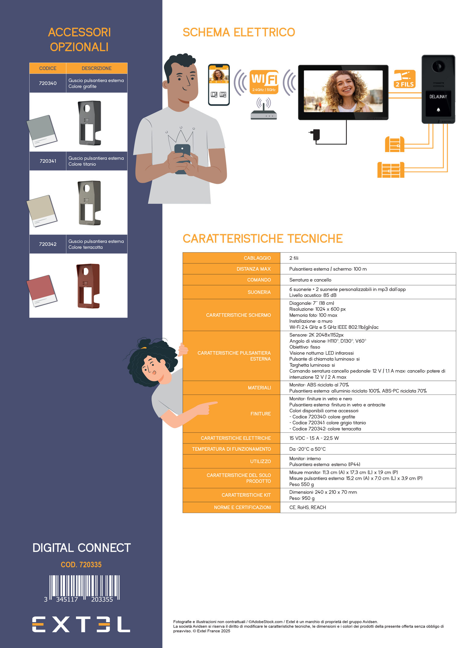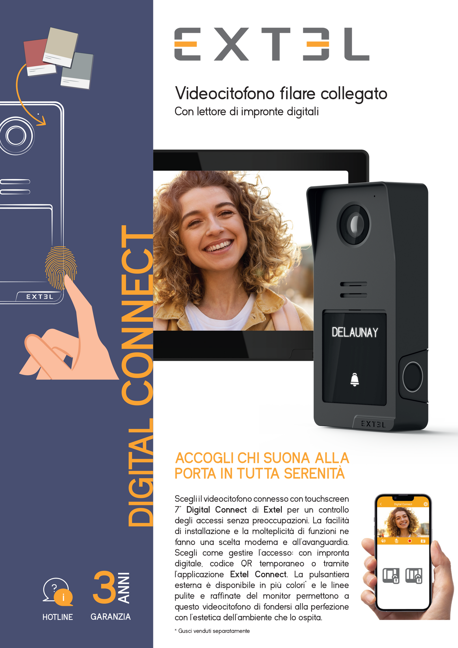 Videocitofono cablato connesso con accesso tramite impronta digitale e generazione codici QR - Digital Connect - Extel - 720335
