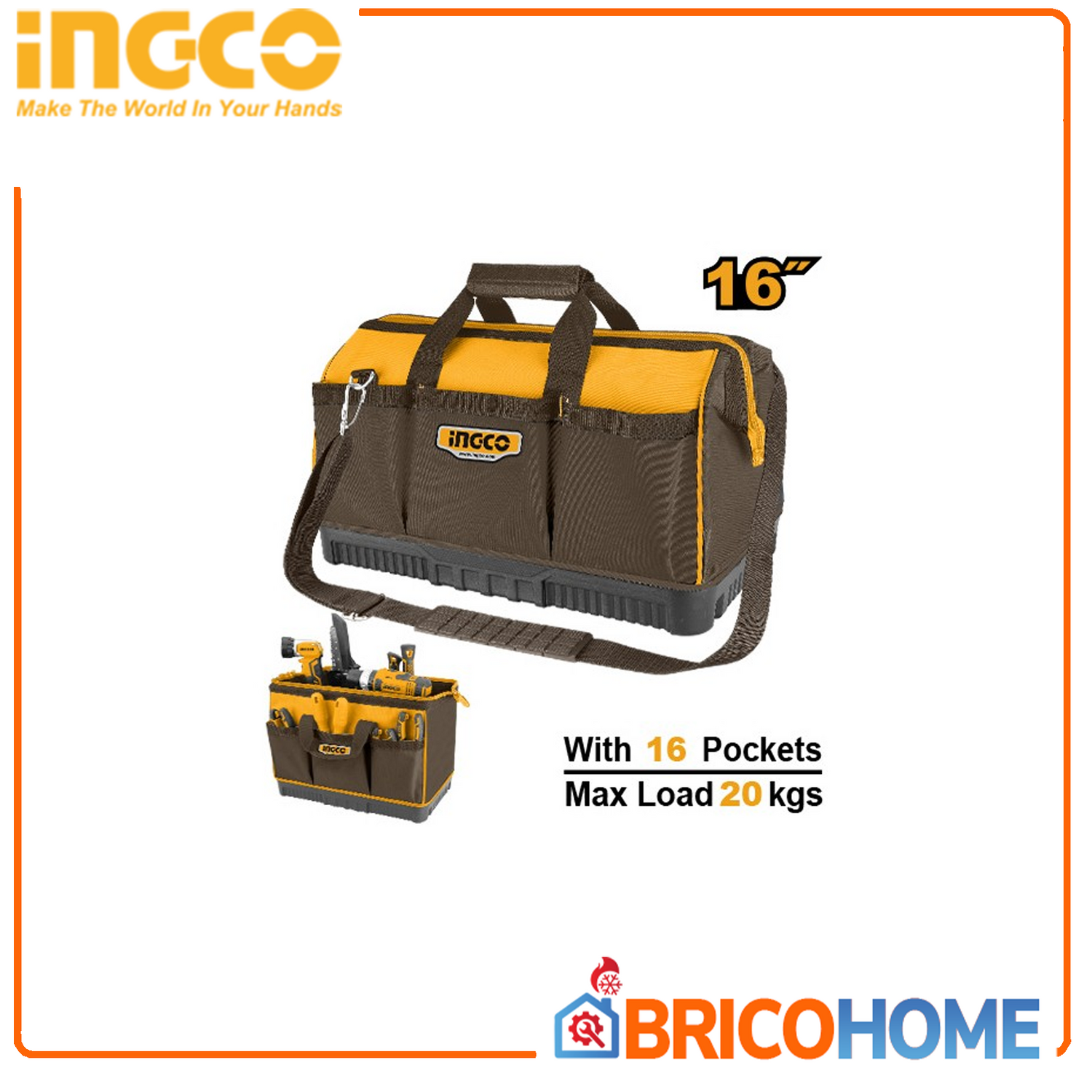 INGCO HTBG08 – Borsa Portautensili Professionale 16" | 1680D | 20kg
