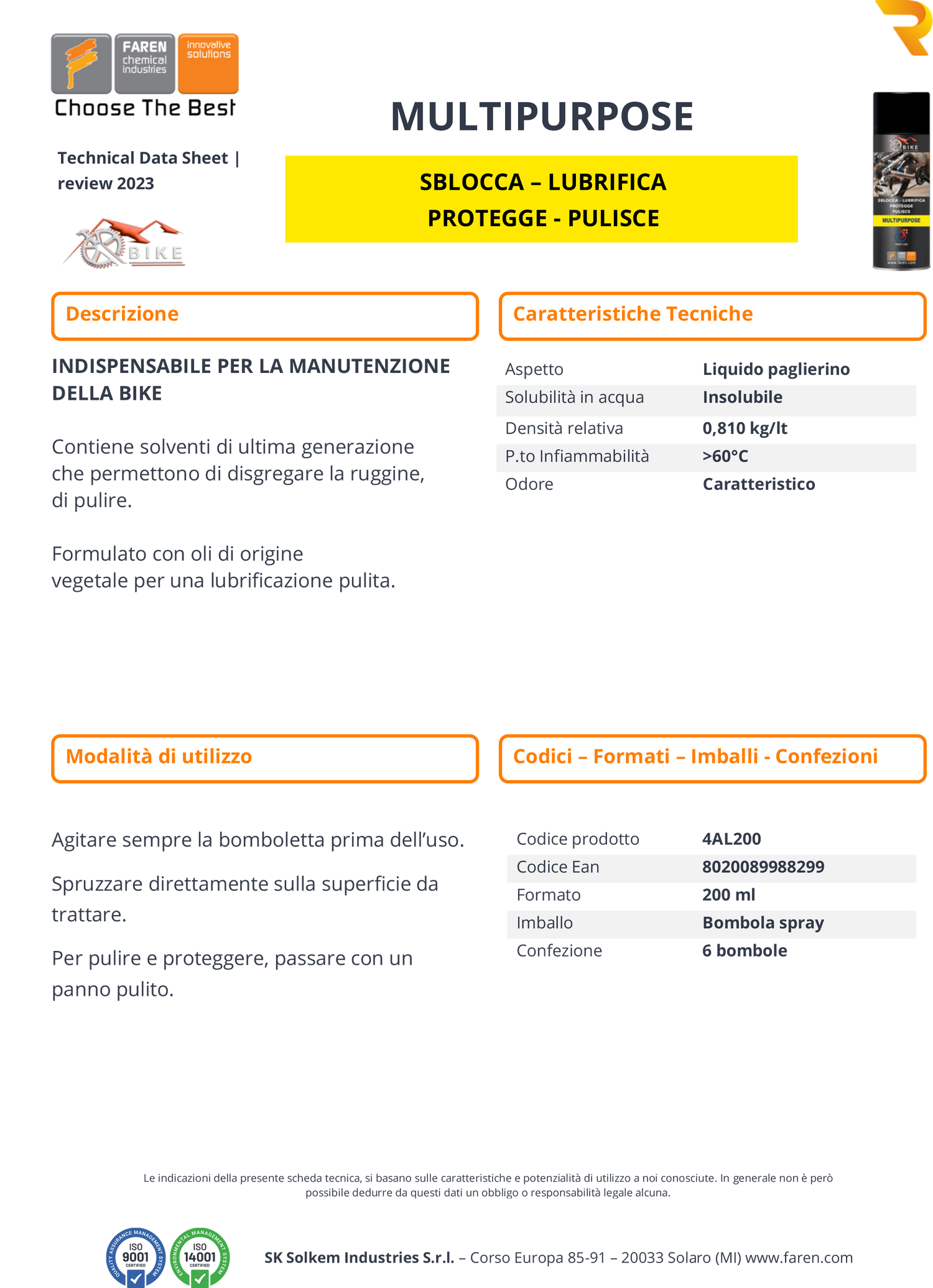 Spray zum Entriegeln, Schmieren, Schützen und Reinigen für Fahrräder, 200 ml