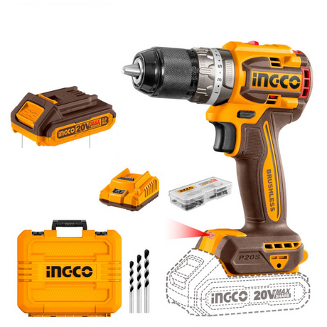KOMPAKTER Bohrschrauber mit Schlagwerk 20V 60Nm BRUSHLESS mit 2 Batterien - INGCO