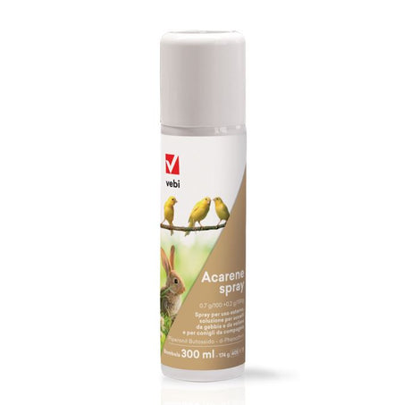 Acarene spray per uccelli da gabbia, voliera e conigli da compagnia - Vebi