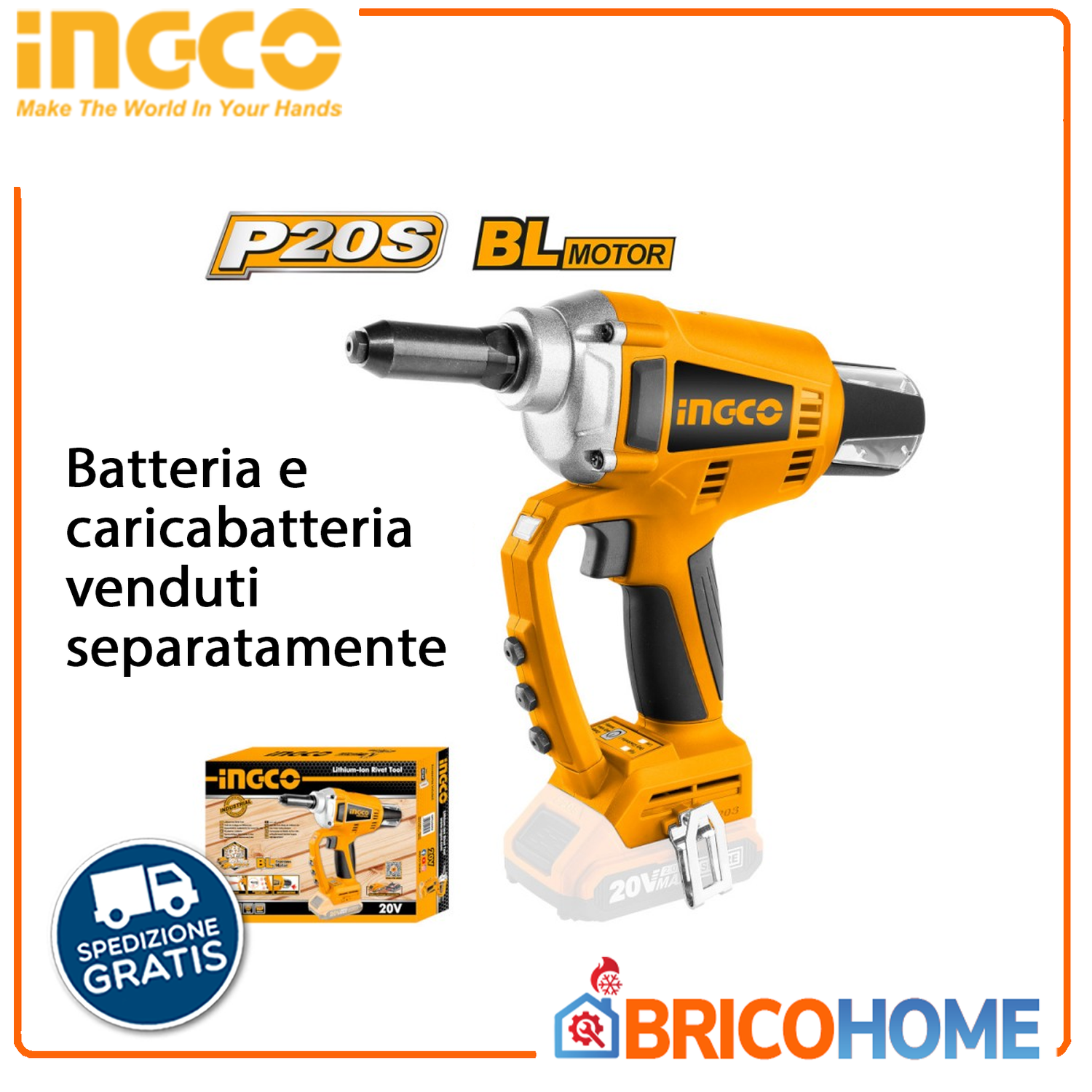 INGCO batteriebetriebenes 20-V-Nacktnietgerät (nur Gehäuse).
