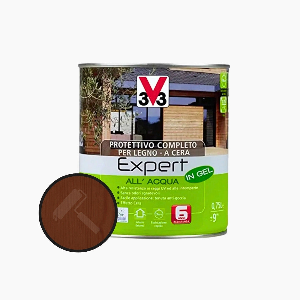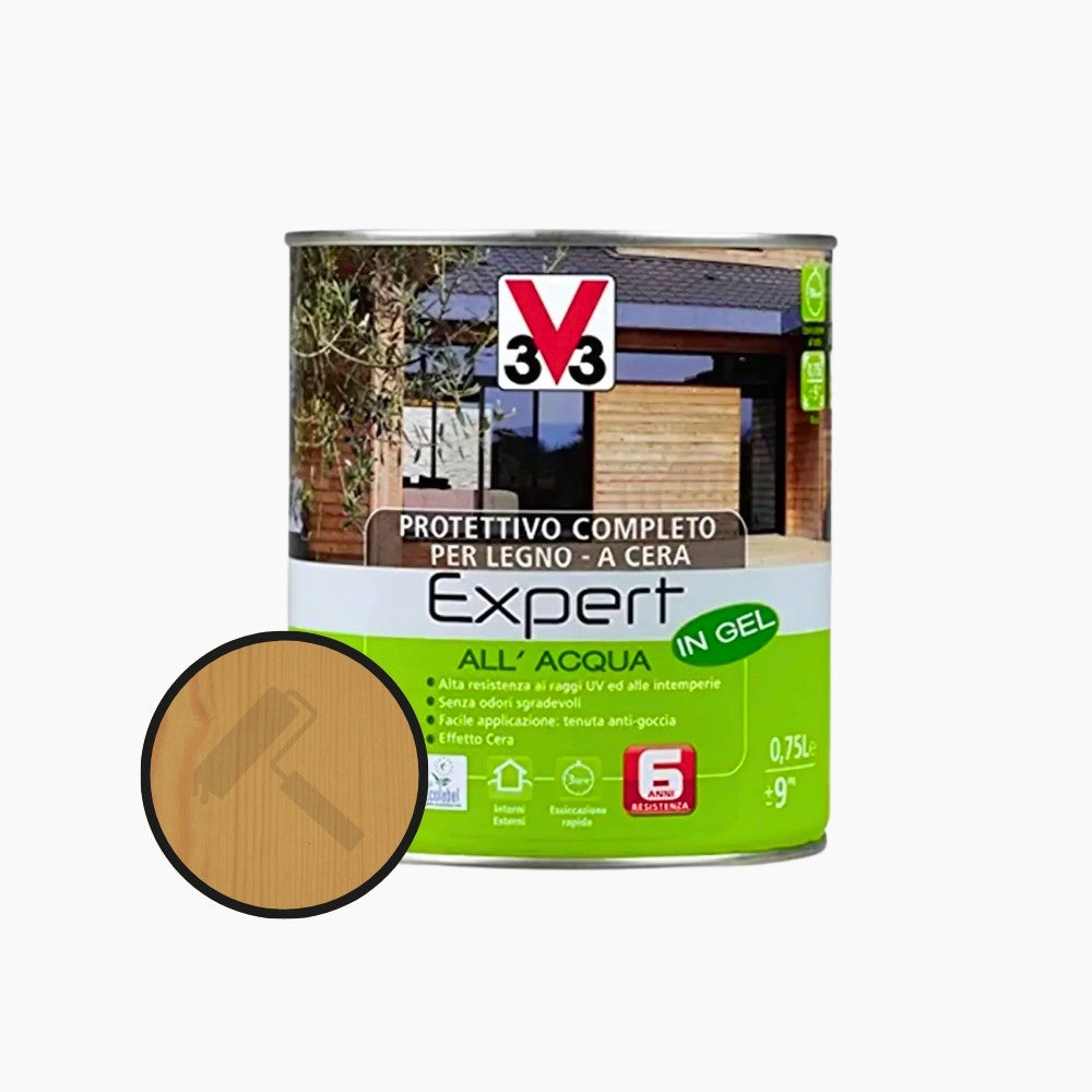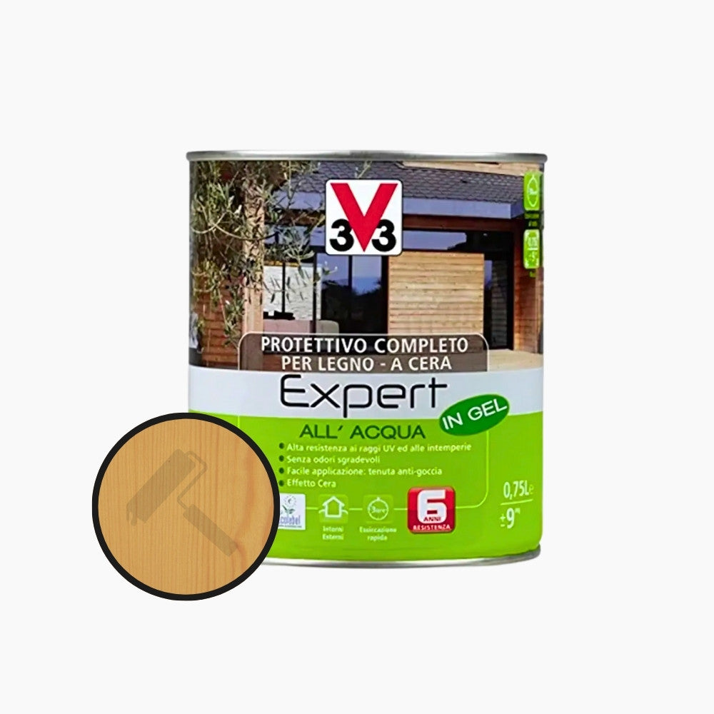 The complete protective Expert Water is ideal on all types of wood, even previously treated. Thanks to the gel formulation with an anti- drip seal , this product has won awards for its simplicity of use and ease of application, even on vertical surfaces. Super resistant to bad weather and UV rays, the complete protective Expert all'Acqua gives the support a wax effect , without requiring further finishing treatments.