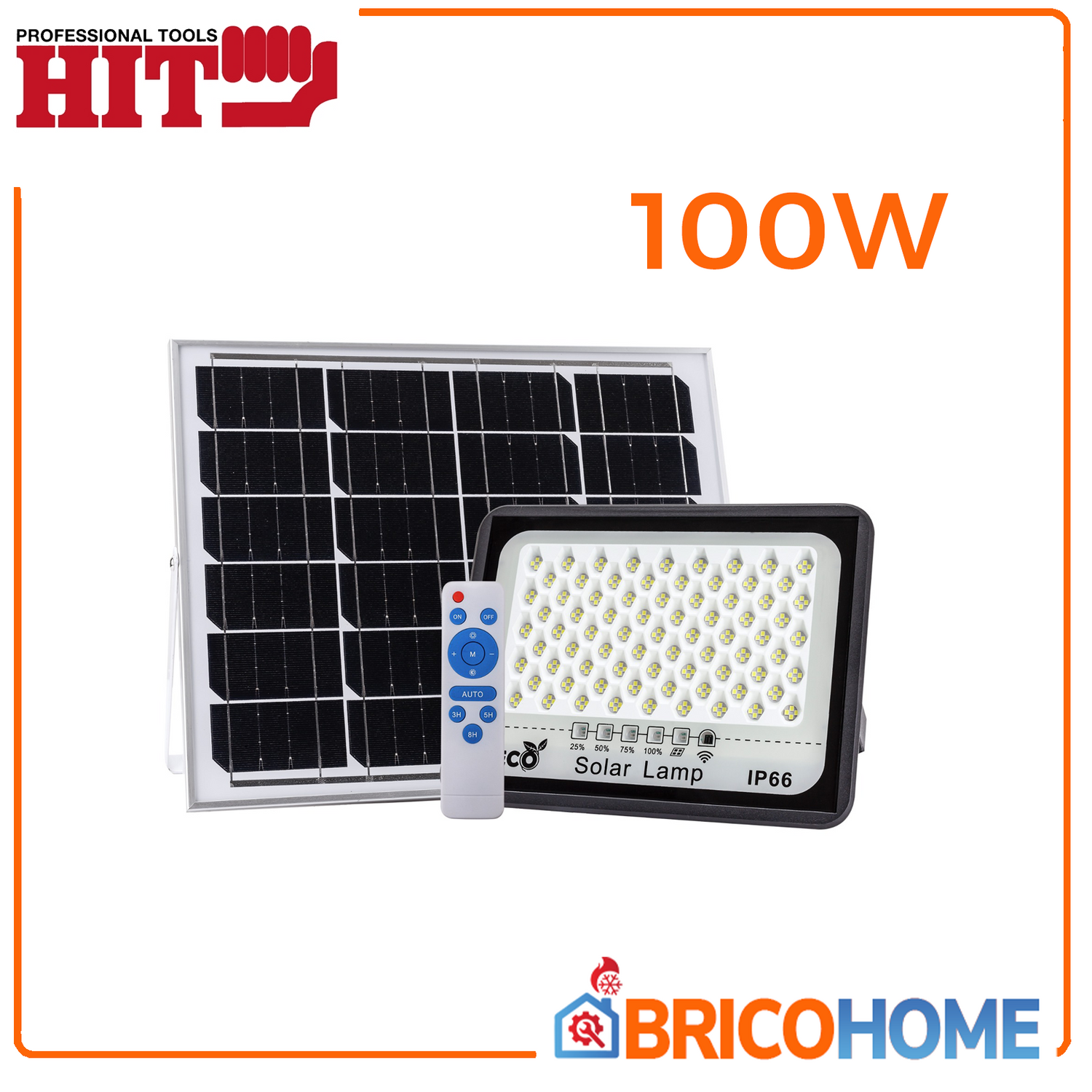 Faro LED da 100W ad energia solare con sensore crepuscolare e telecomando