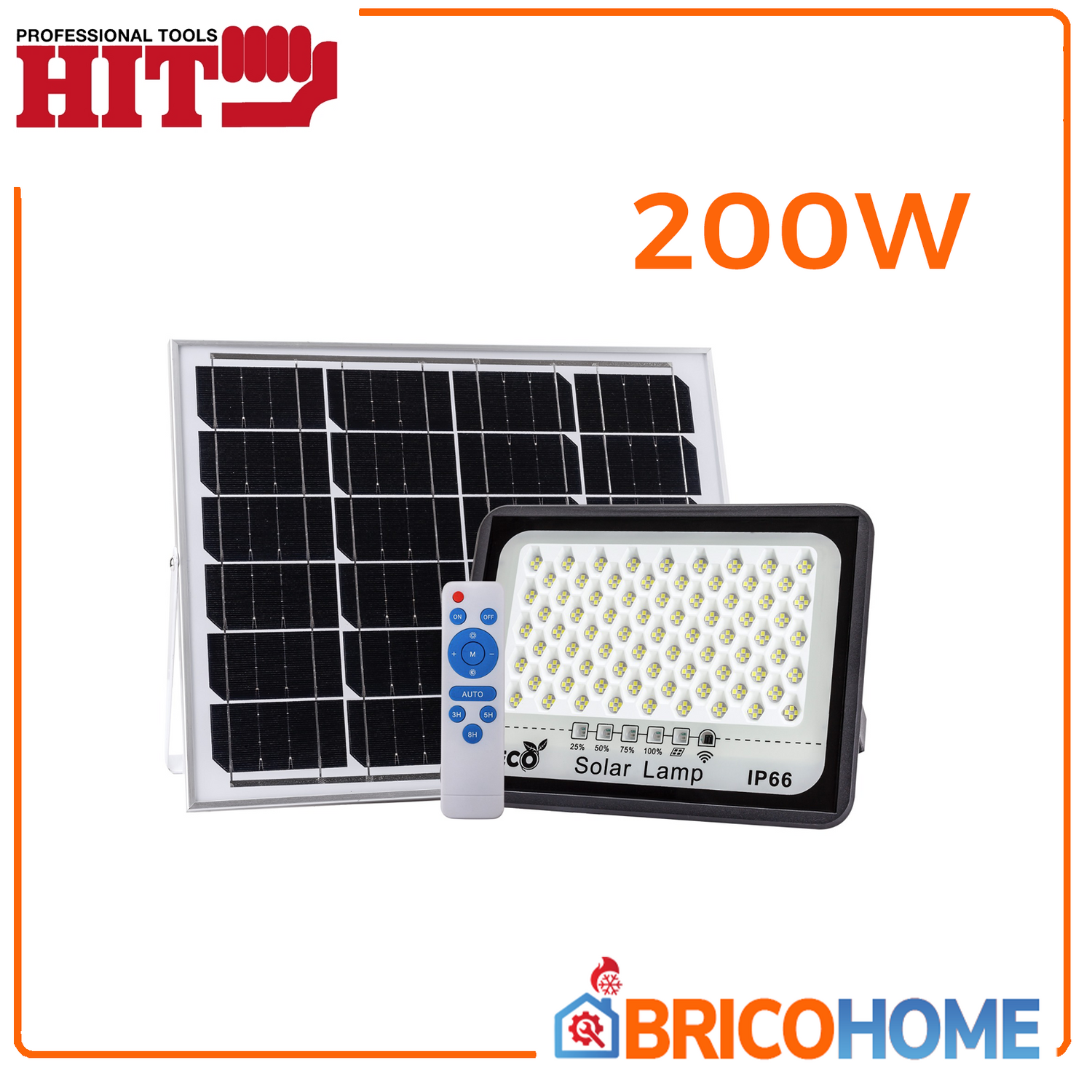 Faro LED da 200W ad energia solare con sensore crepuscolare e telecomando