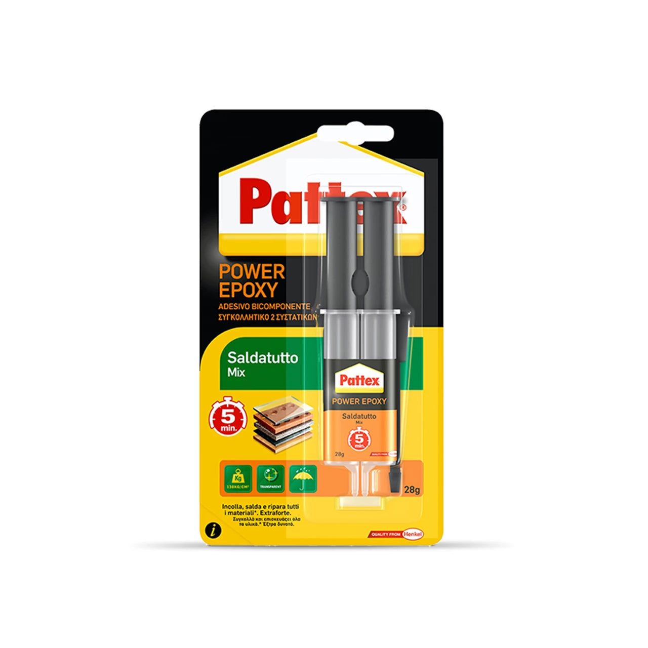 Pattex Power Epoxy Saldatutto Instant Mix 1min. works in 1 minute for a strong and very fast bond.