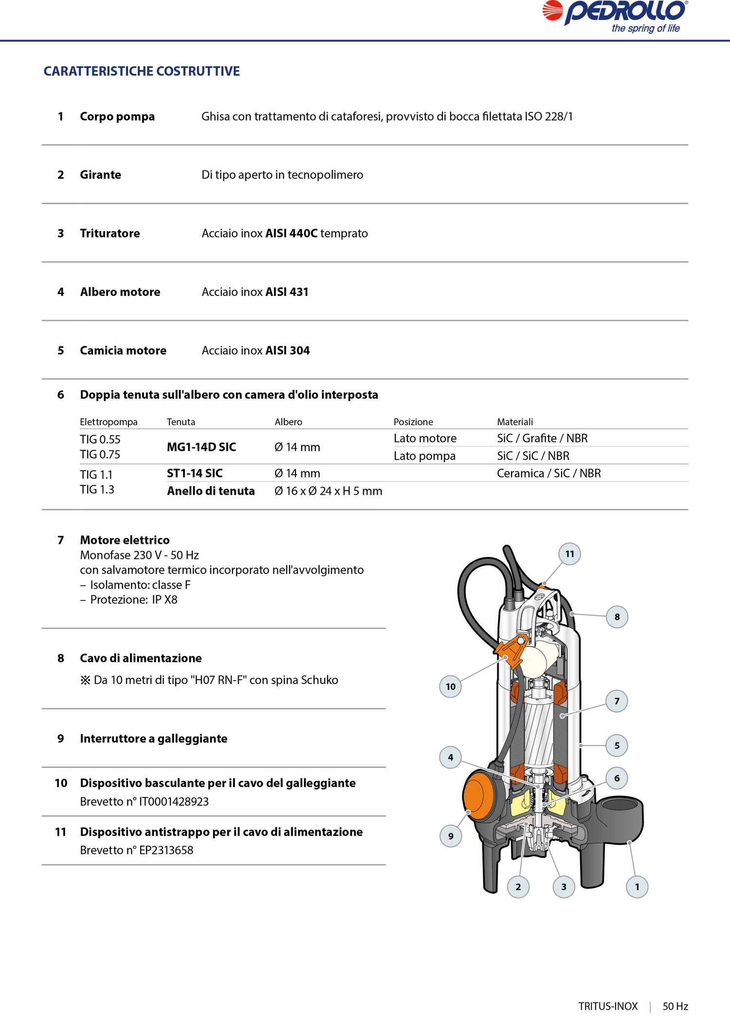 Elettropompe sommergibili TRITUS-INOX con trituratore per acque cariche TIGm 1.1 1,5HP