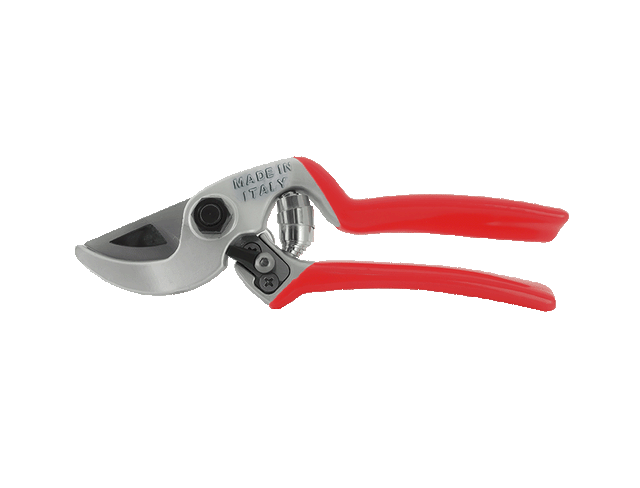 The MINI pruning shears have been designed in every detail to be the lightest in their category, in fact they weigh only 170 gr. Its shape is specially designed for those with small hands. The ergonomic handle and the cutting head aligned with the branch allow the natural position of the wrist to be maintained, reducing the operator's effort during cutting. The beating blade avoids the kickback on the wrist at the end of the cut, while the curved shape of the counter blade holds the branch in position during the entire cutting phase.