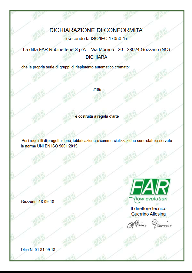 Chrome-plated automatic filling unit for closed circuit systems complete with numbered knob for pressure regulation, check valve, stop cock and inlet filter.