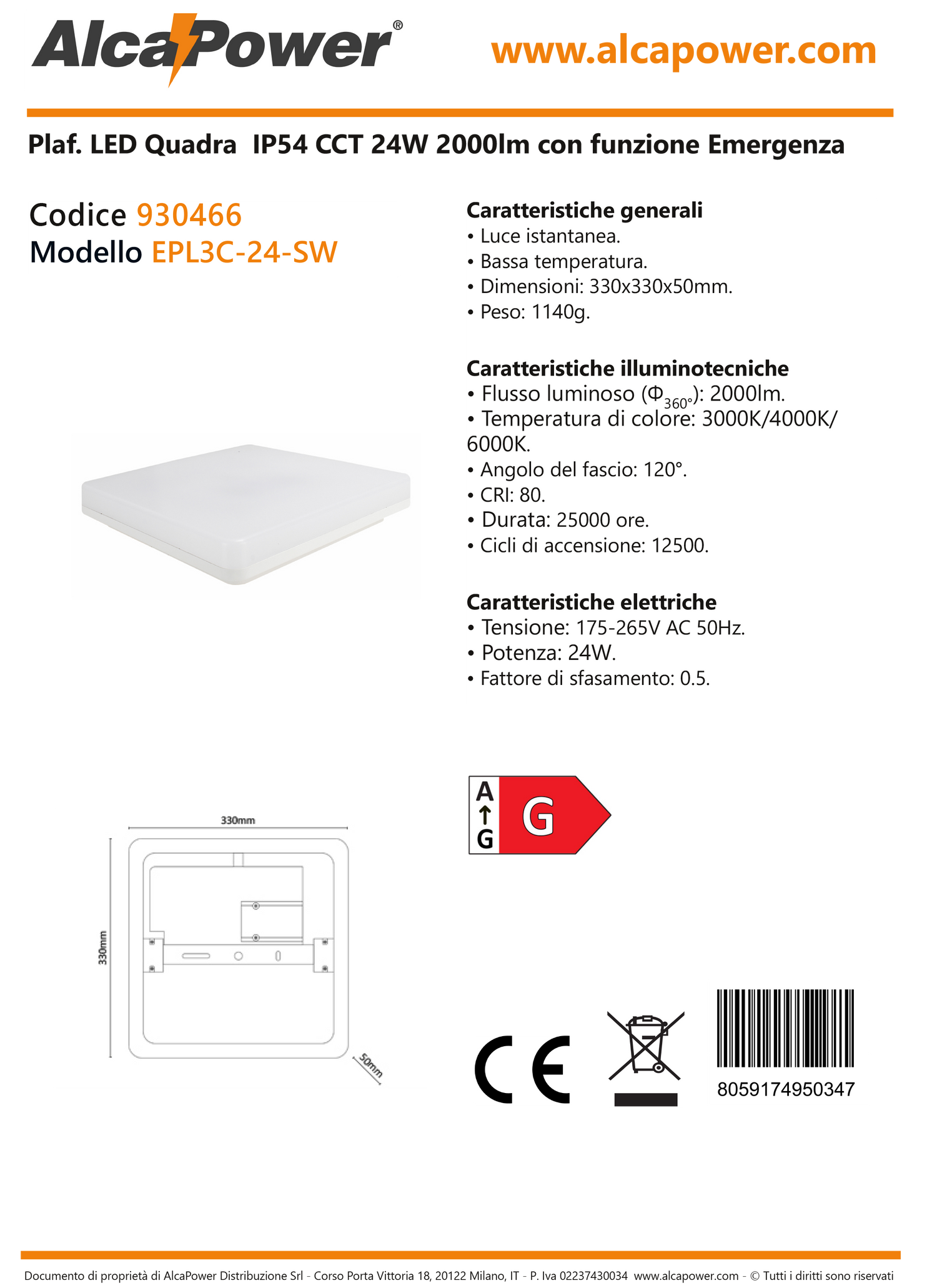- Ingresso: 175-256V AC 50/60Hz 183mA.