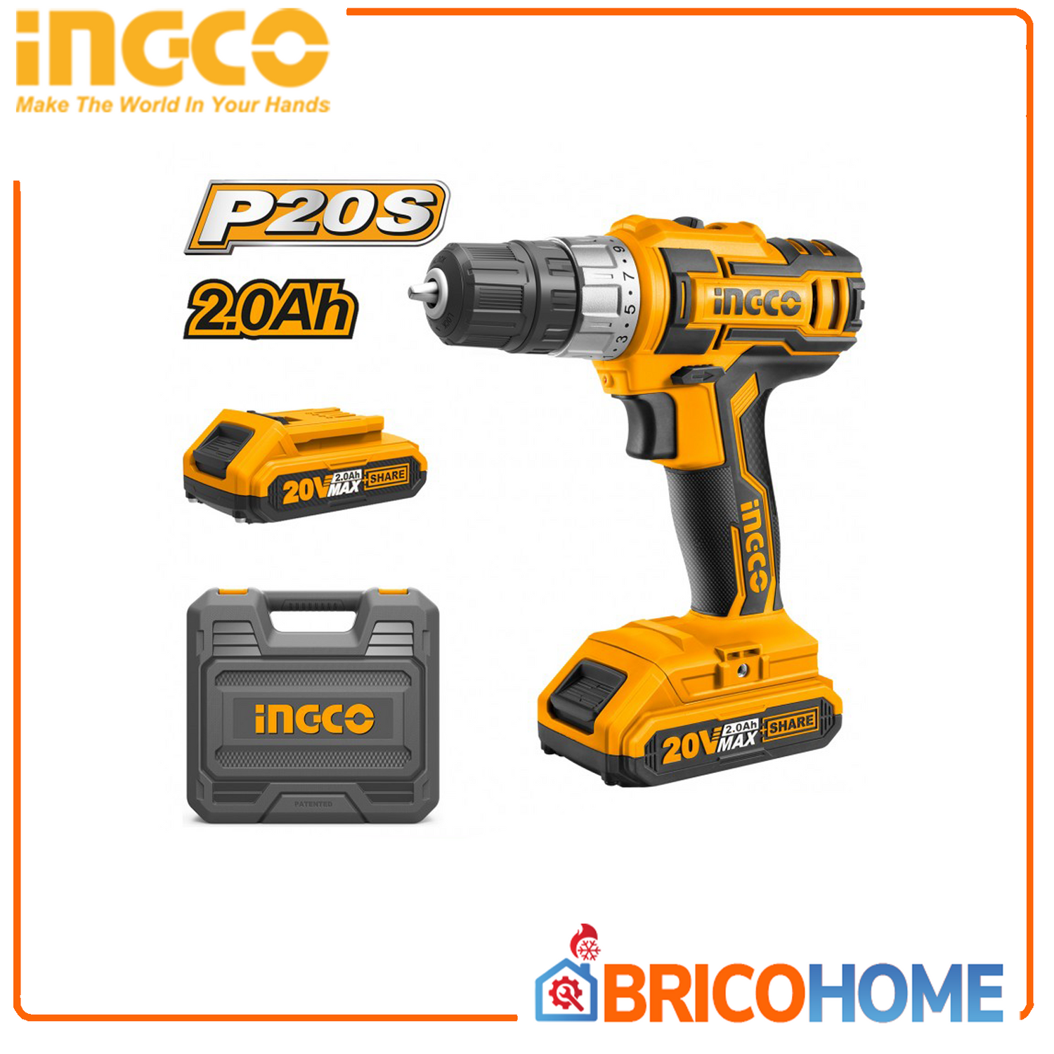 Trapano a Batteria 20V con 2 batterie 2Ah in valigetta - INGCO