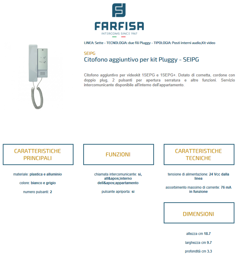 Citofono aggiuntivo per kit Pluggy - SEIPG FARFISA