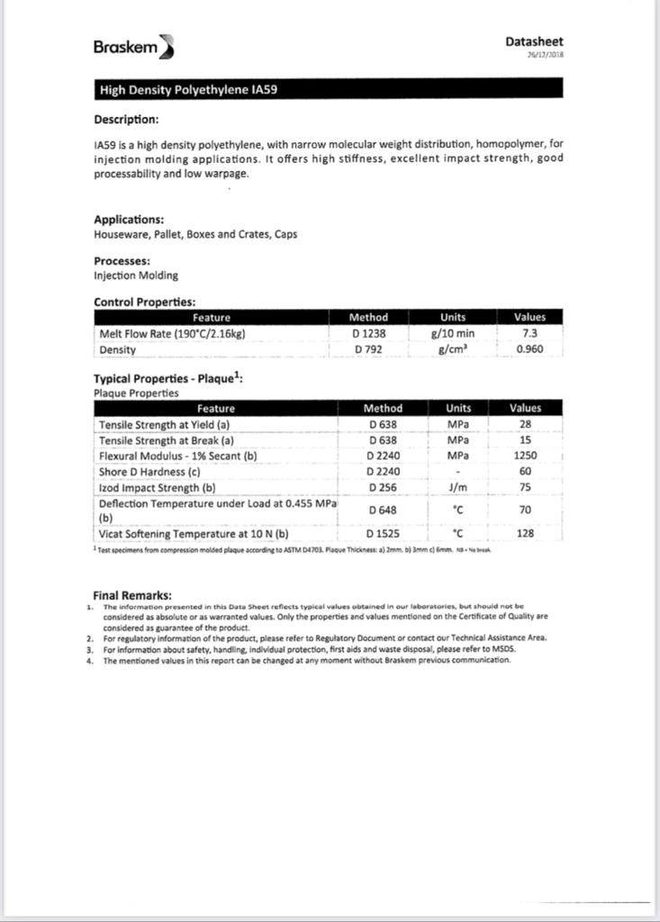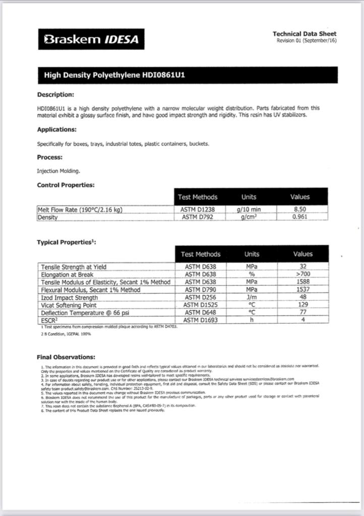 Materiale: Polipropilene