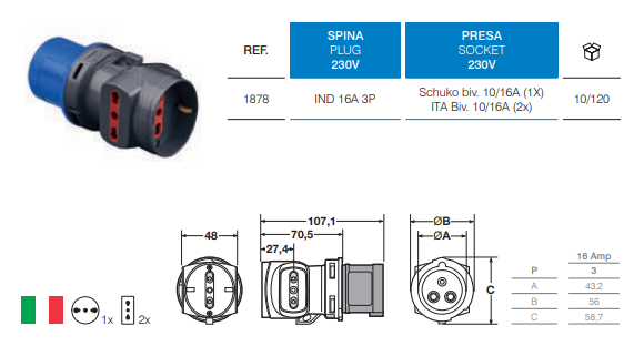 • Presa Schuko bivalente 10/16A (1X) ITA Bivalente 10/16A (2x)