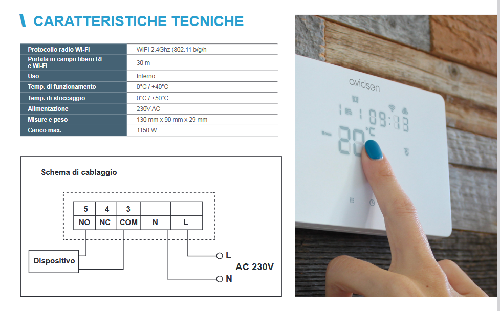 TERMOSTATO CONNESSO WI-FI FILARE NERO Avidsen HomeTempper caldaia e condizionatore COMANDA LA CALDAIA O IL CONDIZONATORE OVUNQUE TU SIA!Il termostato connesso Wi-Fi sarà l’alleato che ti permetterà di ottenere un comfortmaggiore, risparmiando! Il termostato si programma facilmente a partire dall’apped è possibile comandarlo tramite Assistente Google e Alexa. Inoltre fa partedella gamma di prodotti Avidsen Home, e permette così di essere integrato inun impianto con altri accessori come rilevatori di presenza, rilevatori di aperturafinestre e valvole termostatiche connesse. VANTAGGI DEL PRODOTTOComfort- Regolazione caldaie e pompe di calore non reversibili- Programmazione settimanale- Grande interfaccia con visualizzazione della temperatura- Comanda il riscaldamento...