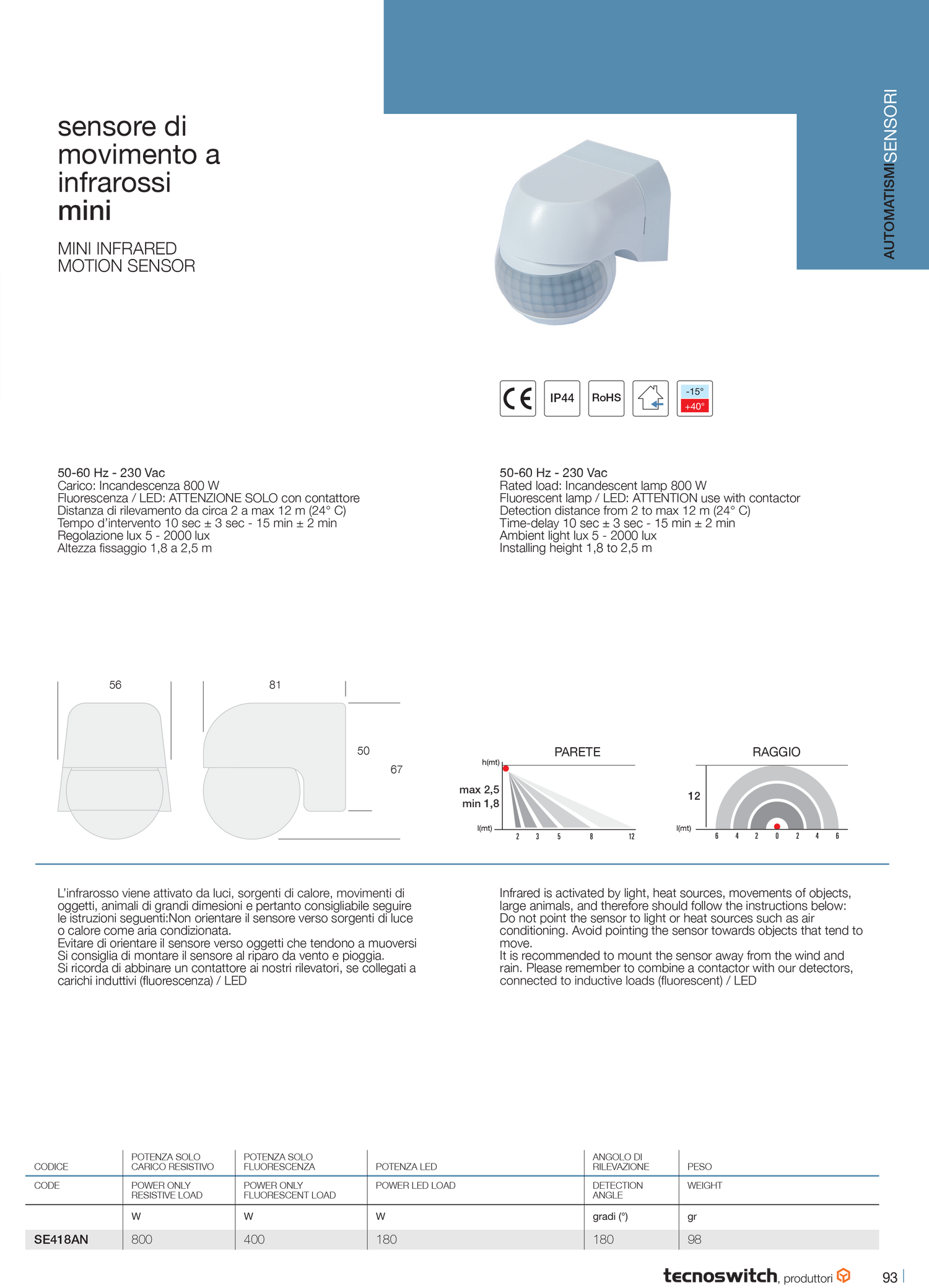 Sensore di movimento a infrarossi MINI Tecno Switch,