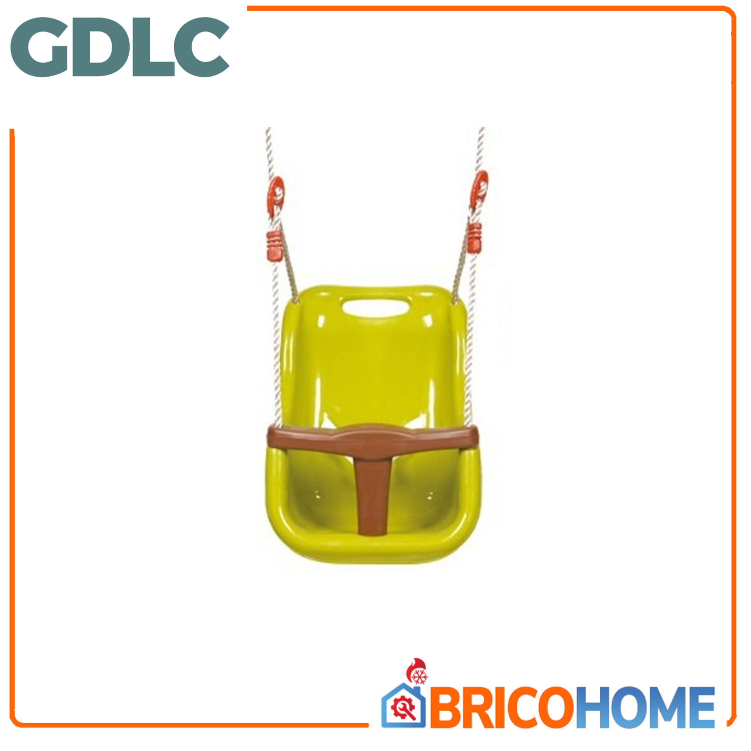Seggiolino in polipropilene con imbracatura di sicurezza, corde in polietilene.
