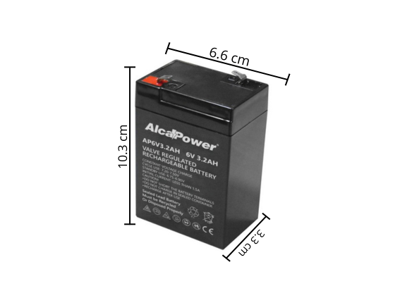 Ricaricabile Ermetica 6V 3,2 Ah- Misure in mm 33x66x103(h)