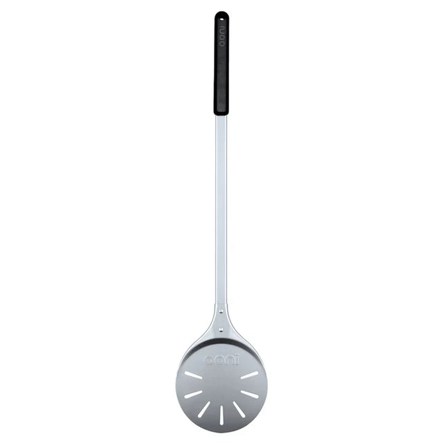 Palino tondo per pizza Ooni Cuoci più velocemente le tue pizze con il palino per pizza Ooni, tenendo le pizze a contatto con la pietra refrattaria mentre le giri come un provetto pizzaiolo nel tuo rovente forno per pizza Ooni. La superficie resistente in alluminio anodizzato da quasi 18 cm ha un effetto antiaderente che le consente di scivolare proprio sotto le pizze, mentre i fori lasciano cadere la farina in eccesso per una base cotta alla perfezione.  Caratteristiche principali Dimensioni: 17 x 80 x 2 cm (7 x 32 x 1″) Peso: 0,4 kg (1 lb) Materiali: Alluminio anodizzato,...