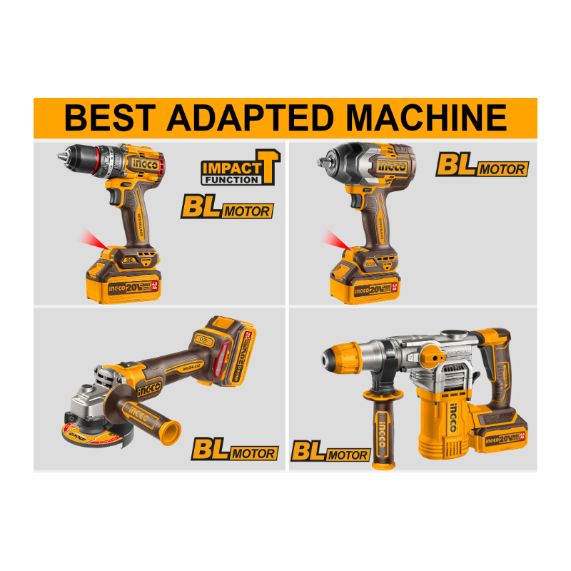 Batteria al litio da 4.0 AhTensione: 20VIndicatore di carica della batteria a LEDAdatto per piattaforma 20V Tempi di ricarica: Ricarica batteria da 20V 4.0 Ah 60min