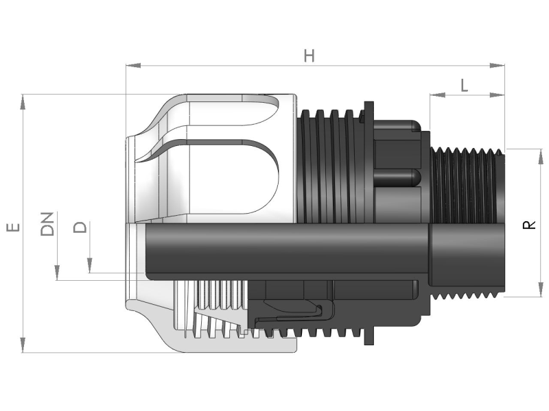 BDFast® PN10 - GIUNTO MASCHIO DIRITTO con un attacco per tubo DN e l’altro filettato maschio