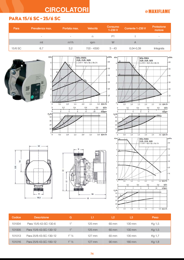 Circolatore inverter WILO Para 25/6 SC int.130mm