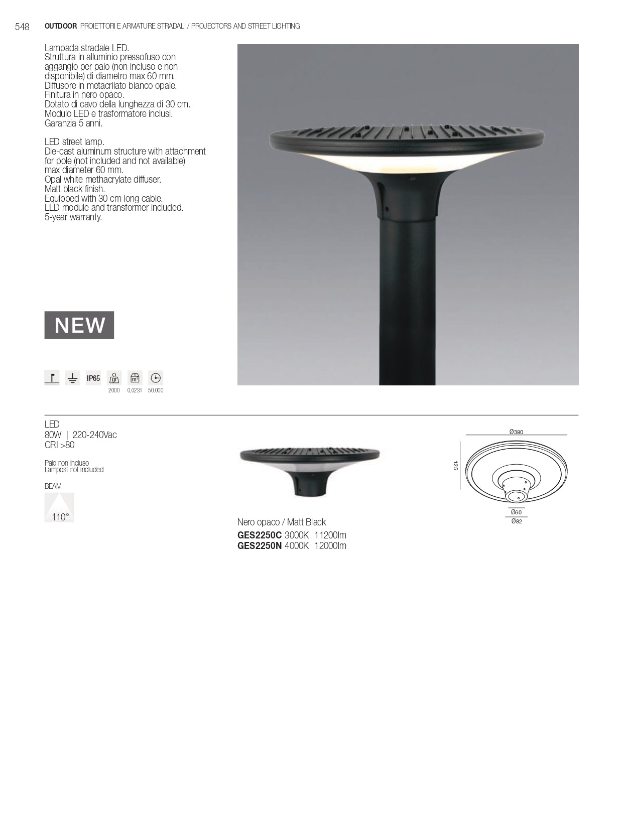 GEA LUCE Proiettore testapalo (lampione stradale) a LED 80W 220V AC - GES2250