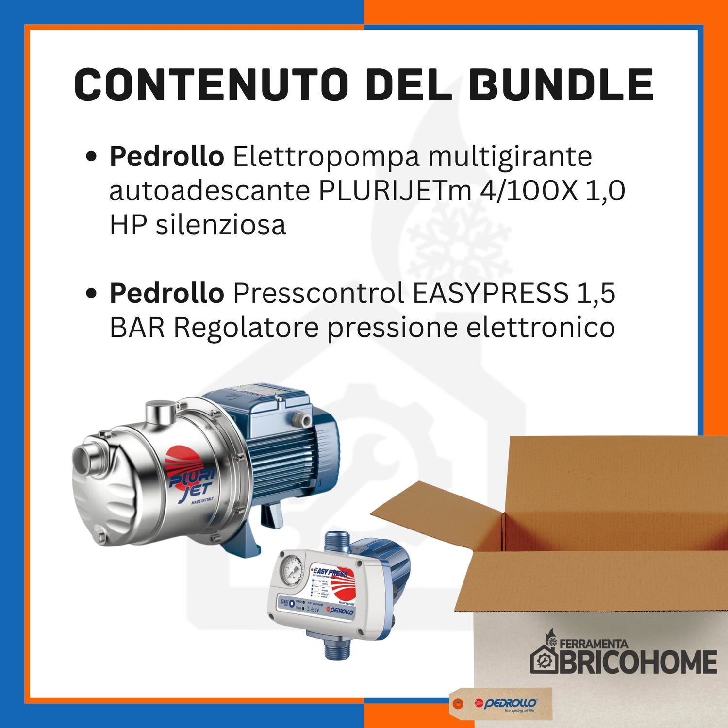 Kit Pedrollo Elettropompa PLURIJETm 4/100X 1,0 HP + Presscontrol EASYPRESS 1,5 BAR [BUNDLE]