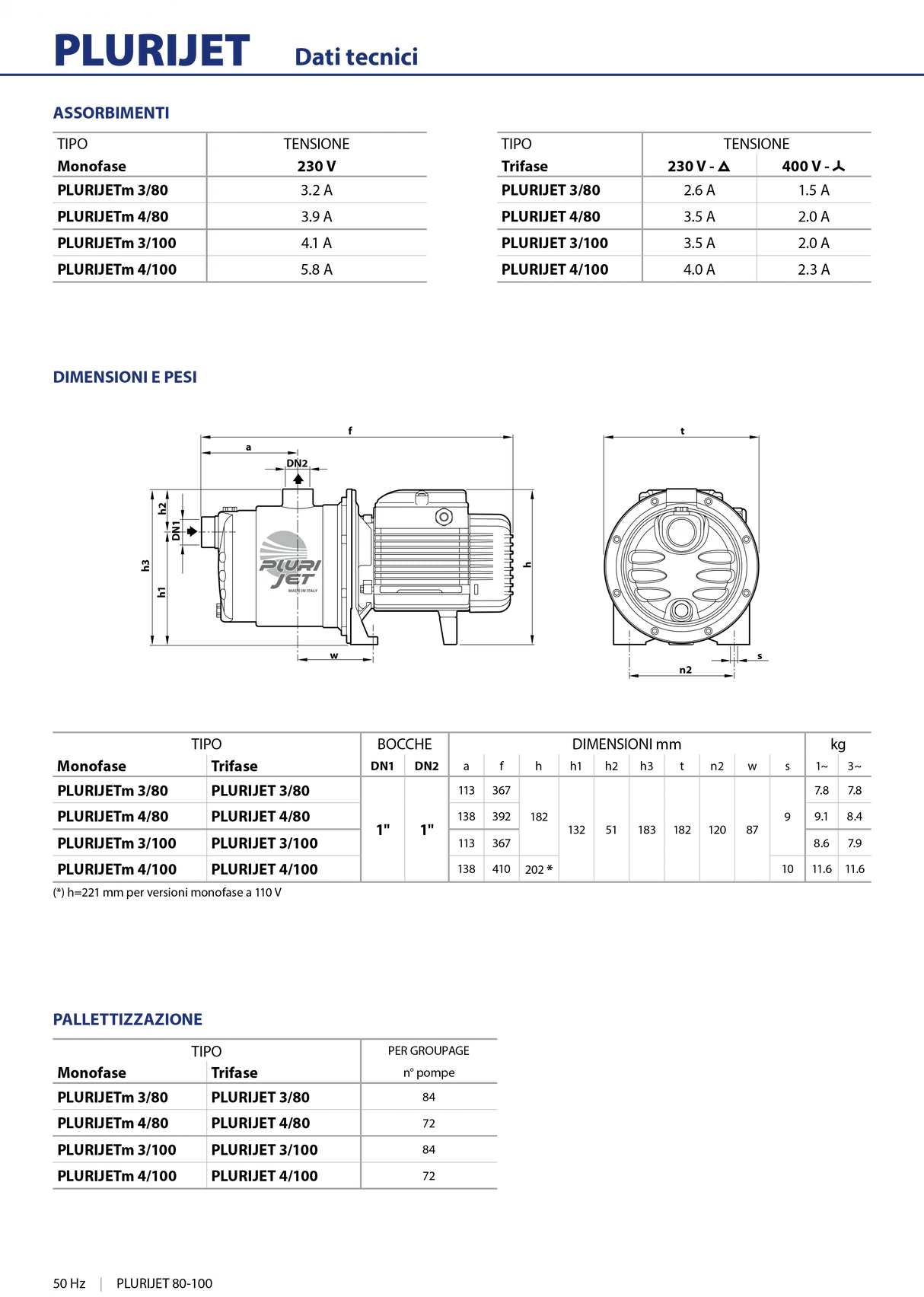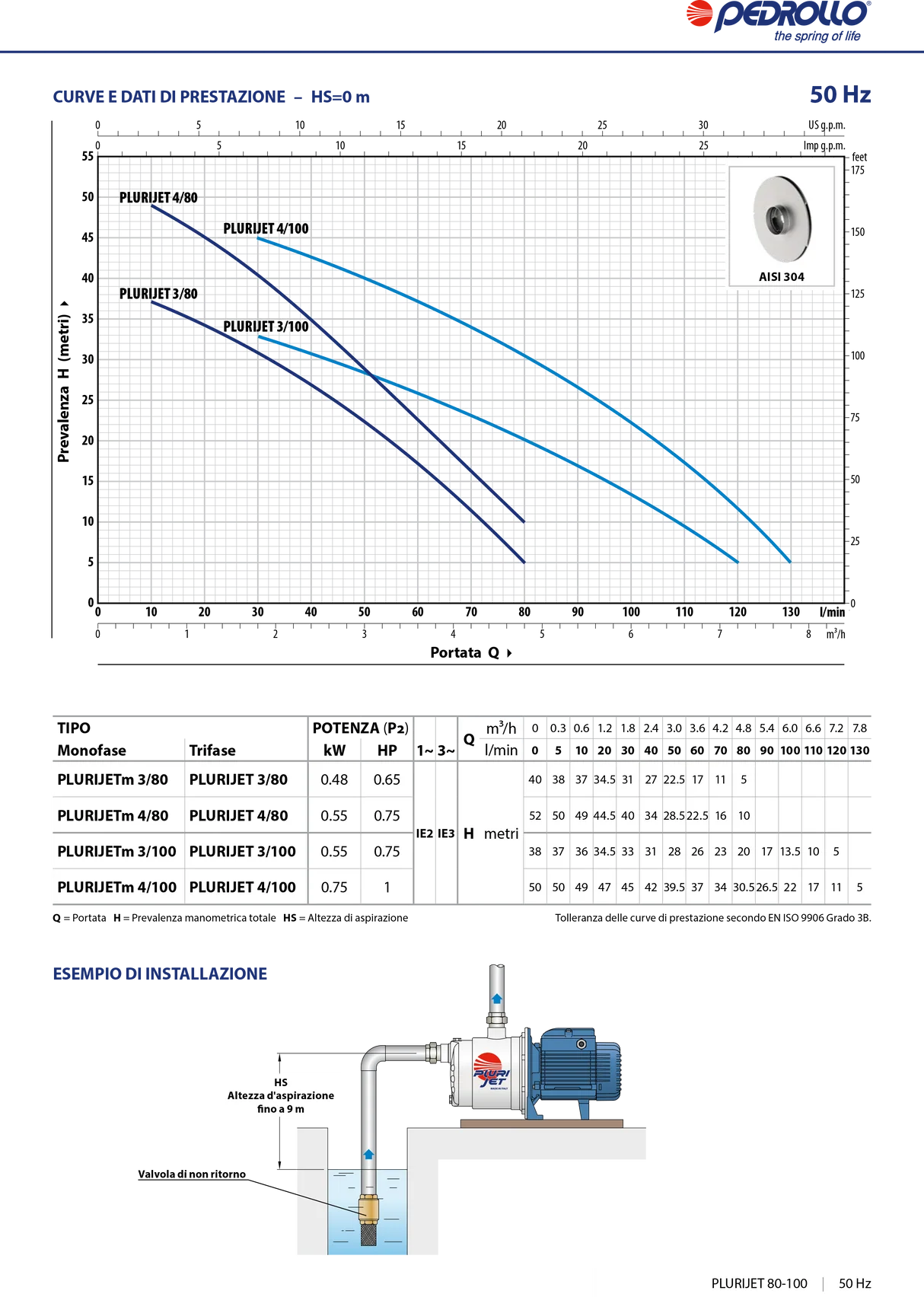 PLURIJET 80-100 Elettropompe multigiranti autoadescanti. Versione con girante Acciaio Inox AISI 304