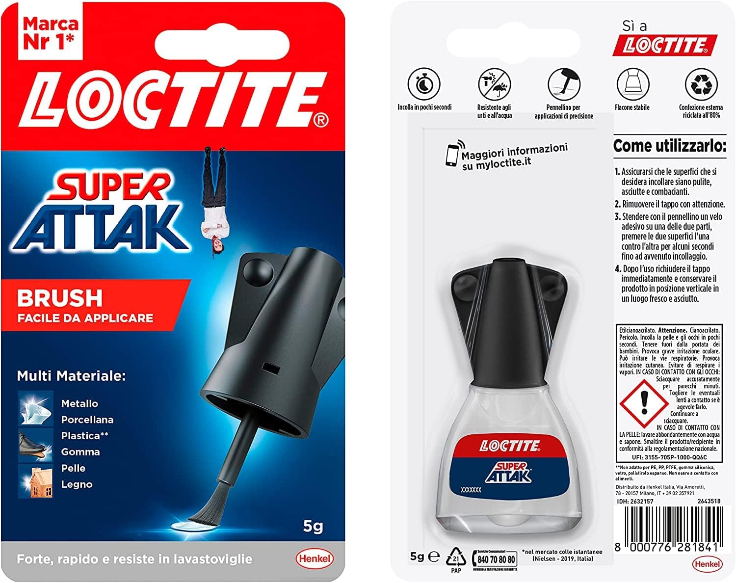 LOCTITE Super Attak Easy Brush 5gr Adesivo istantaneo liquido, il cui pratico pennello permette una facile applicazione e una precisione assoluta anche nei particolari più minuti. Consente di dosare con la massima precisione la quantità di colla desiderata e stenderla perfettamente su ogni tipo di superficie, senza sbavature. La sua forma moderna e accattivante gli conferisce stabilità e praticità nell’apertura e nella chiusura. Ideale per l’incollaggio di gomma, metallo, ceramica, legno, cuoio, pelle e vari tipi di plastica (tranne PE, PP, PTFE).