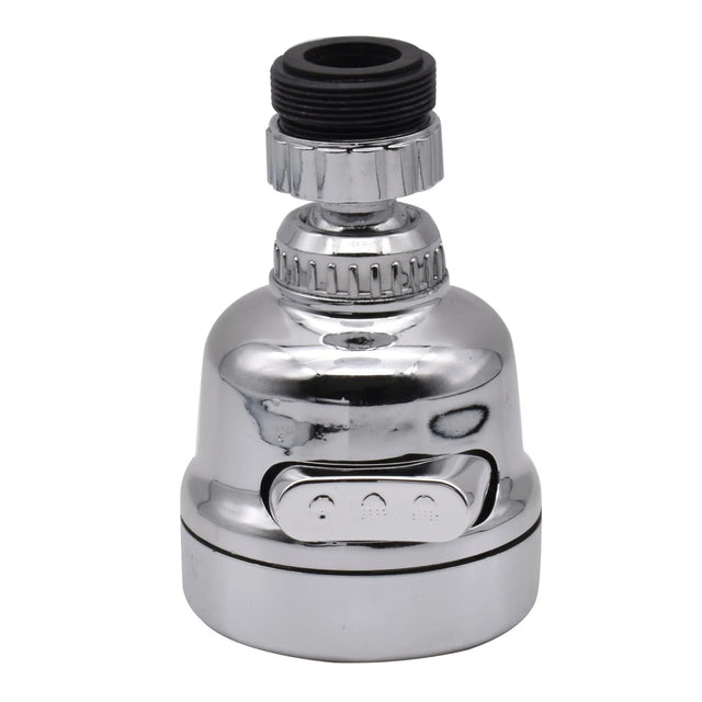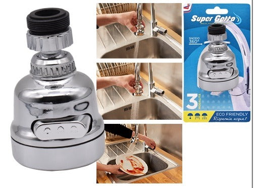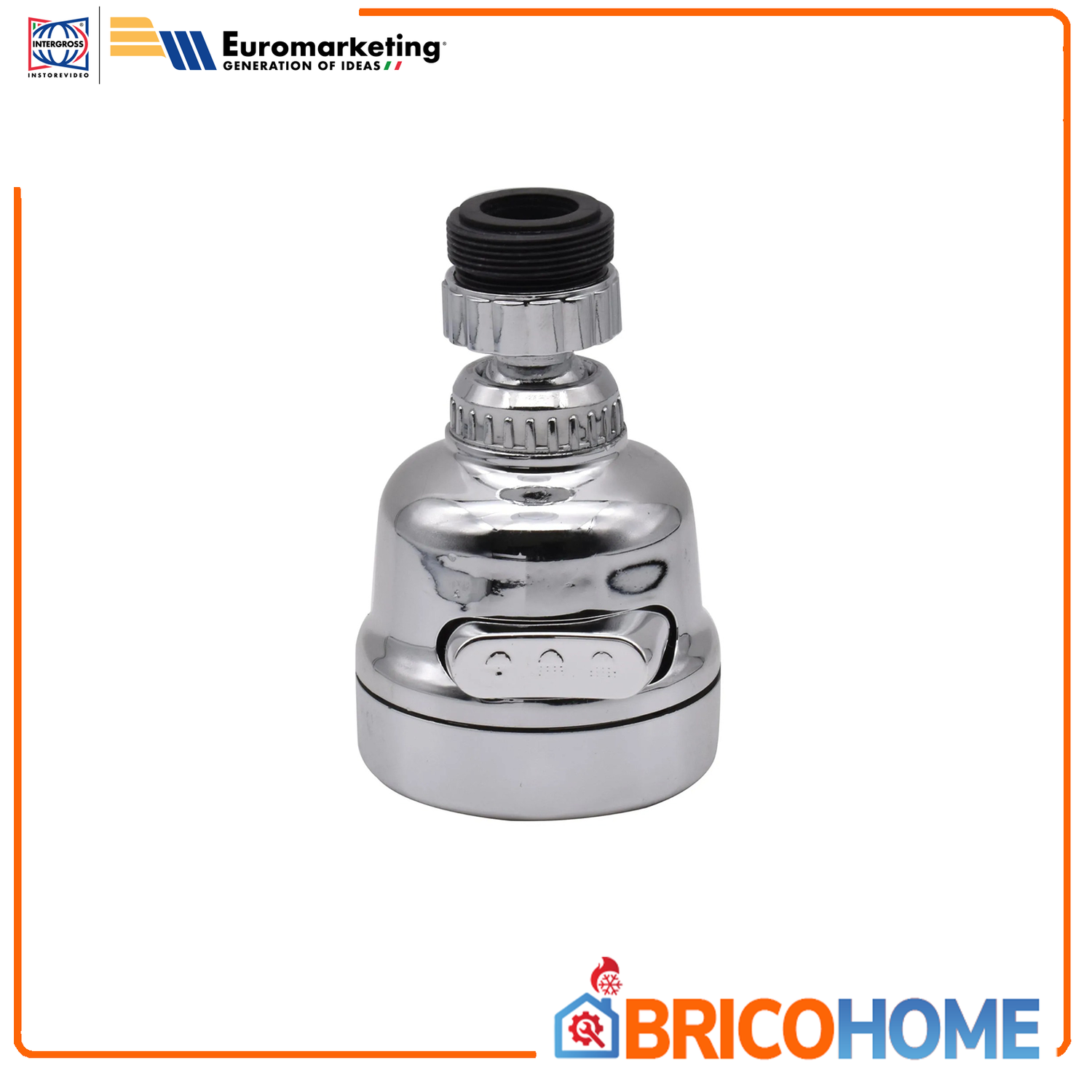 Miscelatore multifunzione Super Getto • 3 impostazioni di getto selezionabili dal pulsante laterale.• Efficace per sciacquare verdure, posate, piatti ecc.• Il giunto sferico a 360° semplifica la pulizia del lavello della cucina.• Adatto a tutti i rubinetti comuni con filettatura standard 22 mm / 24 mm.• Per le filettature interne utilizzare l’adattatore in dotazione.• Può essere smontato per la decalcificazione.