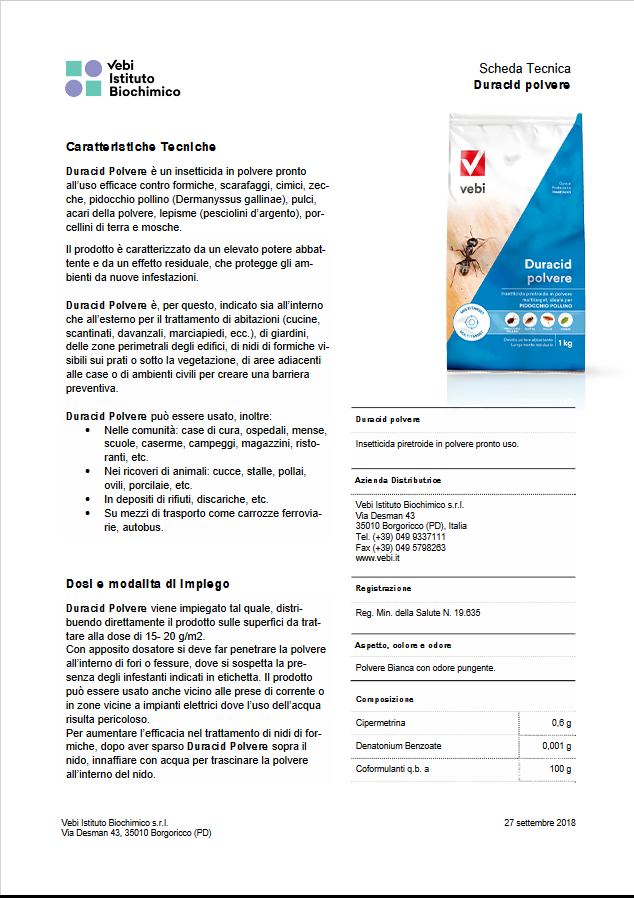 Duracid polvere Insetticida piretroide in polvere pronto all'uso. VEBI