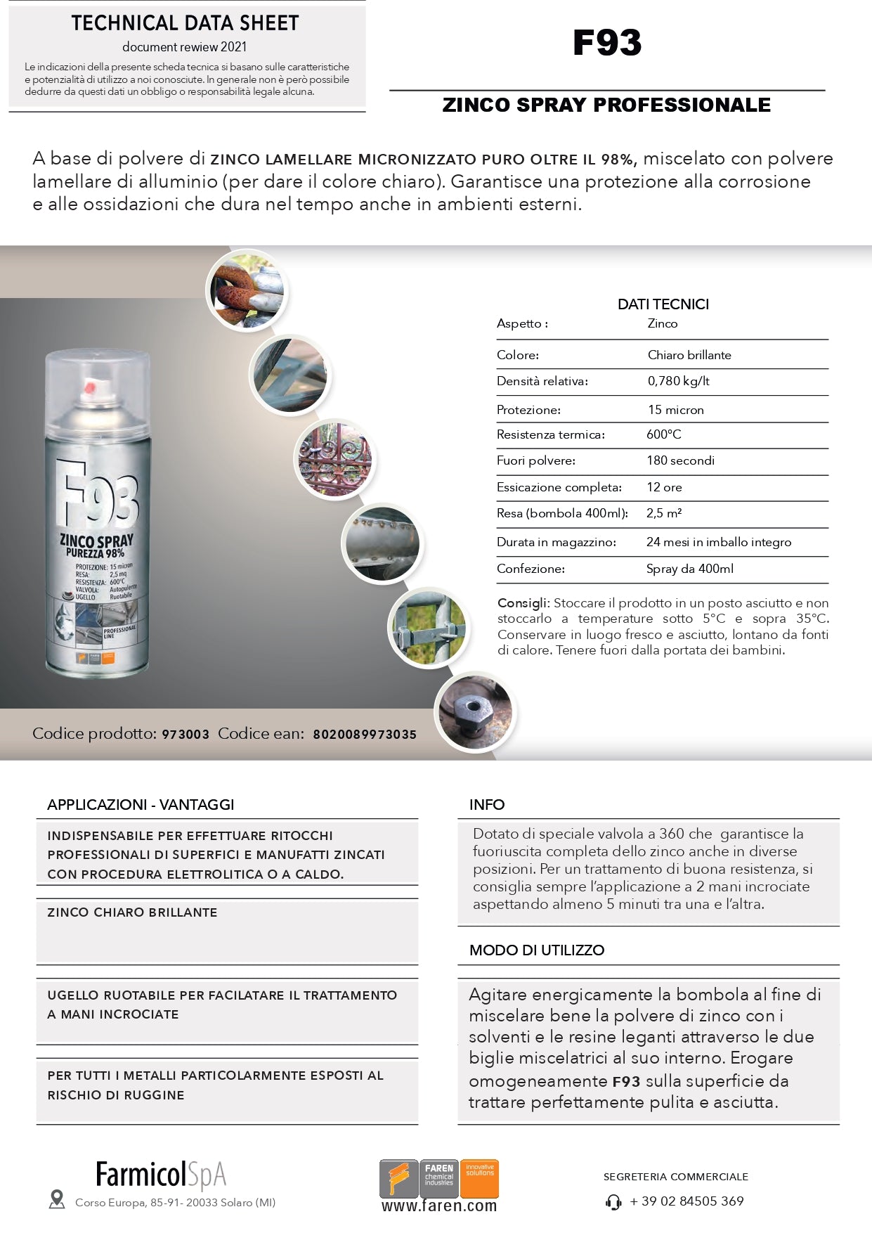 Faren F93 Zinco spray zincante a freddo professionale 400ml
