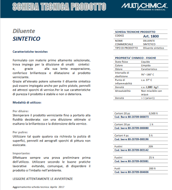 Dank seiner hohen Lösekraft kann der synthetische Verdünner auch zur Reinigung von verschmutzten Pistolen, Pinseln und Werkzeugen verwendet werden. Aufgrund seiner Reinheitseigenschaften ist das Produkt stabil und verschlechtert sich nicht.