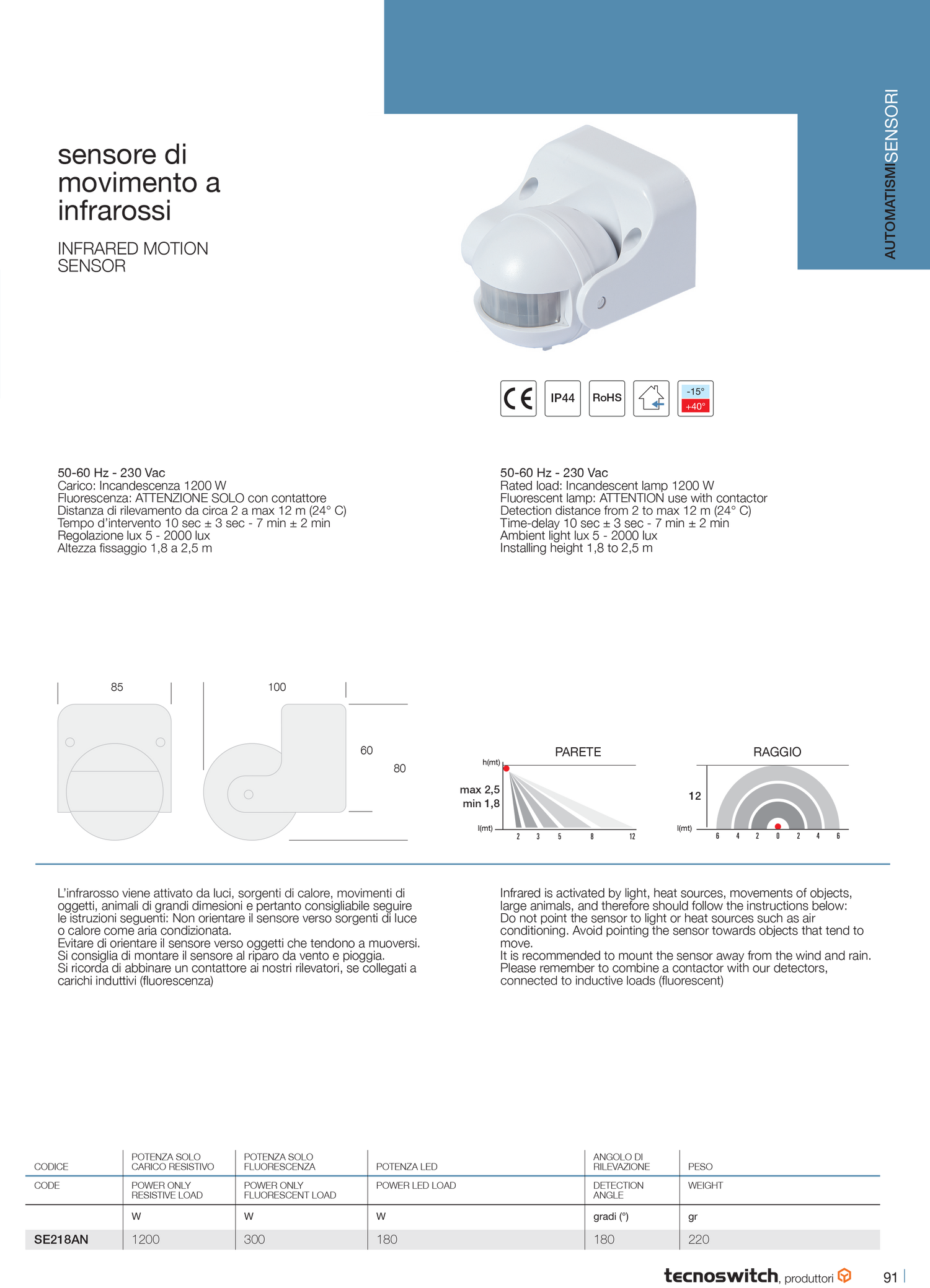 Erfassungsreichweite von ca. 2 bis max. 12 m einstellbar (24° C)