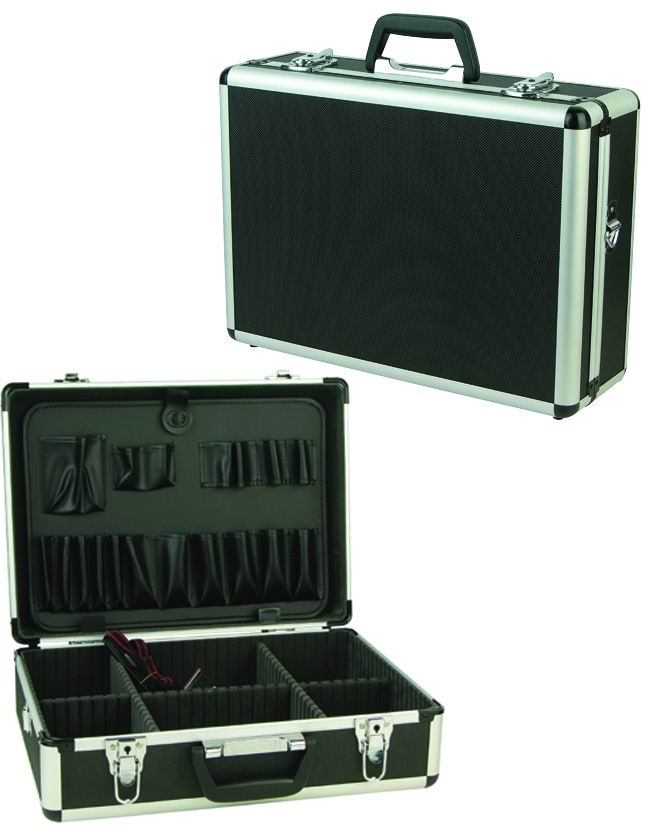 A: La valigetta è leggera nonostante la costruzione robusta in alluminio, facilitando il trasporto anche quando è piena di attrezzi.